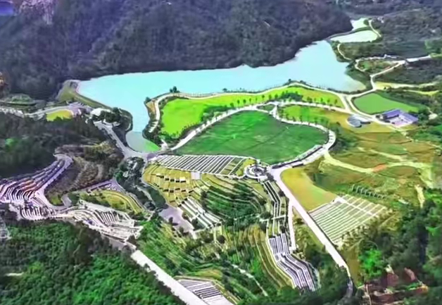 人与自然的和谐共生。生态自然线和人文艺术线两条设计主线山水而行,蜿蜒向前,相互穿插,互为衬托,是一个寄情山水涤心传韵,身有所养、心有所依、灵有所属、魂有所归的心灵栖息地。